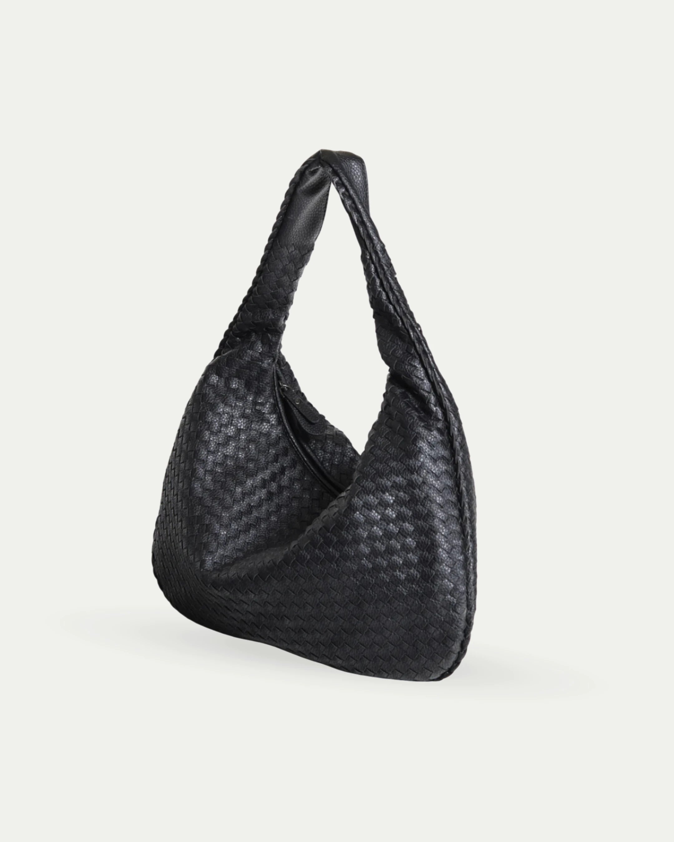 Semi-circular shoulder bag with distinctive braided design